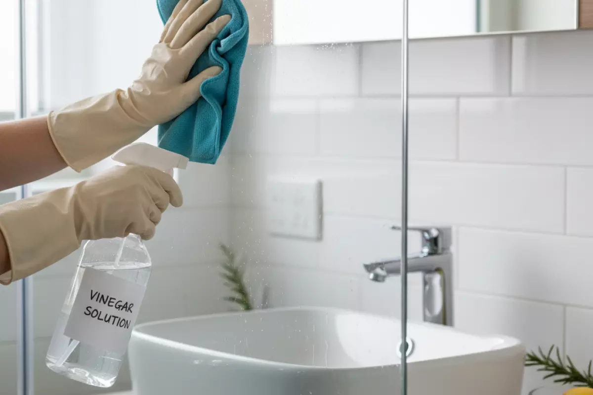 Уксус хорошо работает там, где нужно убрать следы жёсткой воды, мыльный налёт, брызги на стекле и тусклость на плитке. Он растворяет минеральные отложения и помогает быстро освежить гладкие поверхности. Для уборки обычно используют столовый уксус, разведённый водой, чтобы запах был мягче, а действие — безопаснее.