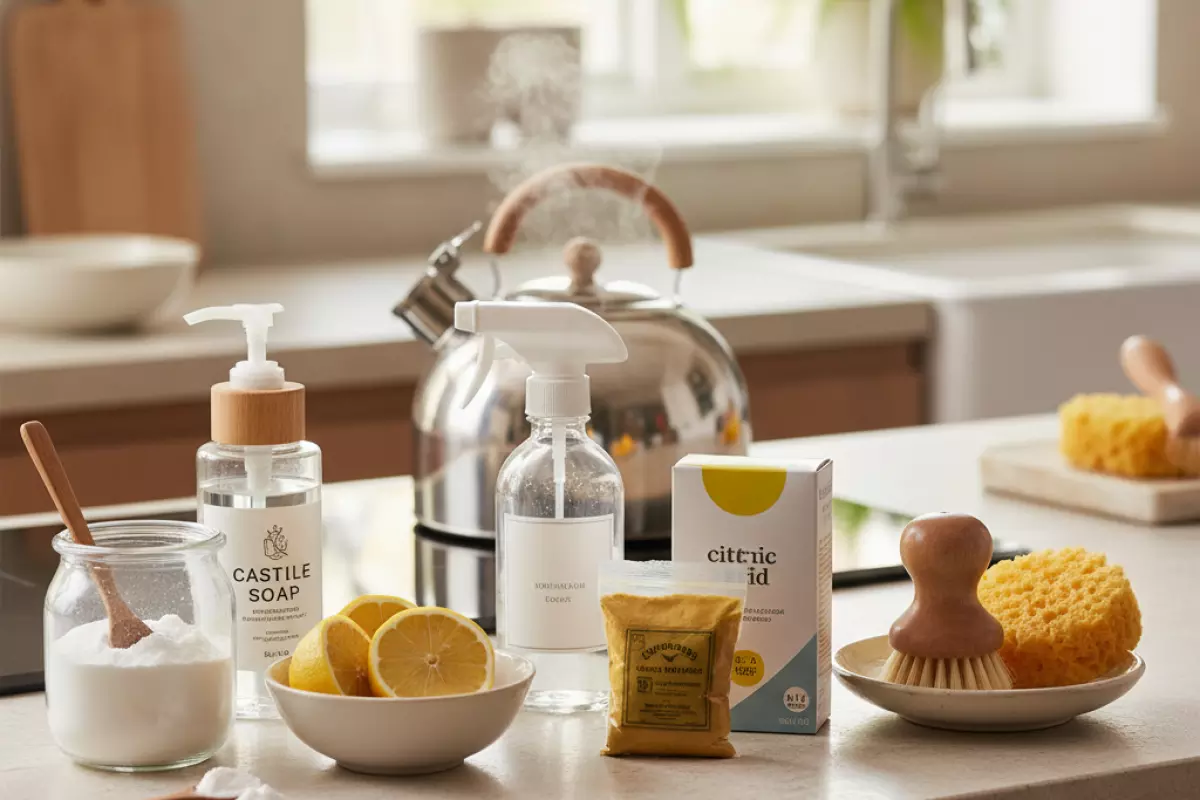 Удобнее не искать «одно универсальное средство от всего», а собрать понятную схему. Например, мыло и горячая вода — для ежедневной уборки, сода — для сложных пятен, лимонная кислота — для накипи, горчичный порошок — для жирной посуды.
