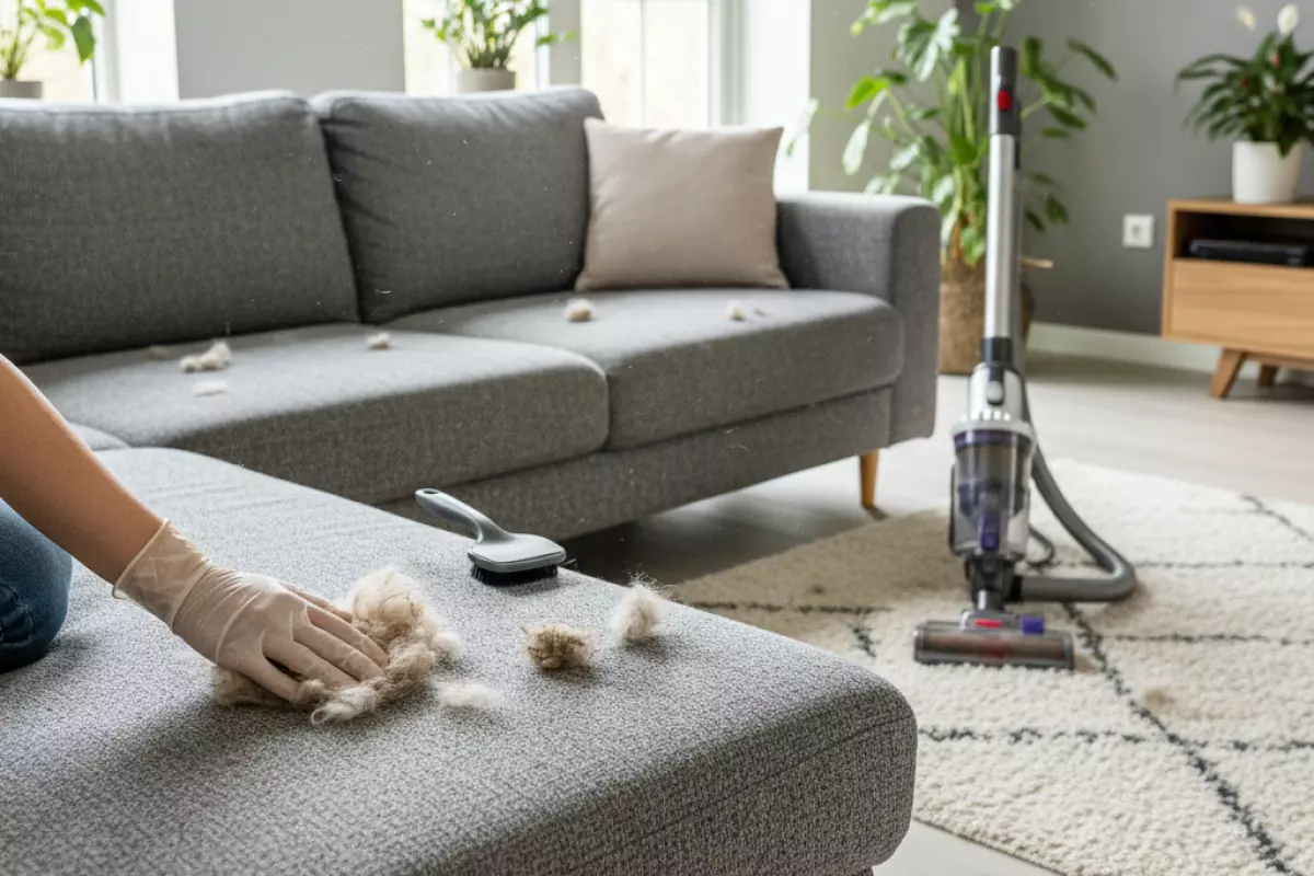 Когда времени мало, полезно делить уборку на зоны: сиденье, спинка, подлокотники, затем пол вокруг мебели. Так легче не пропускать участки, где волоски скапливаются чаще всего.