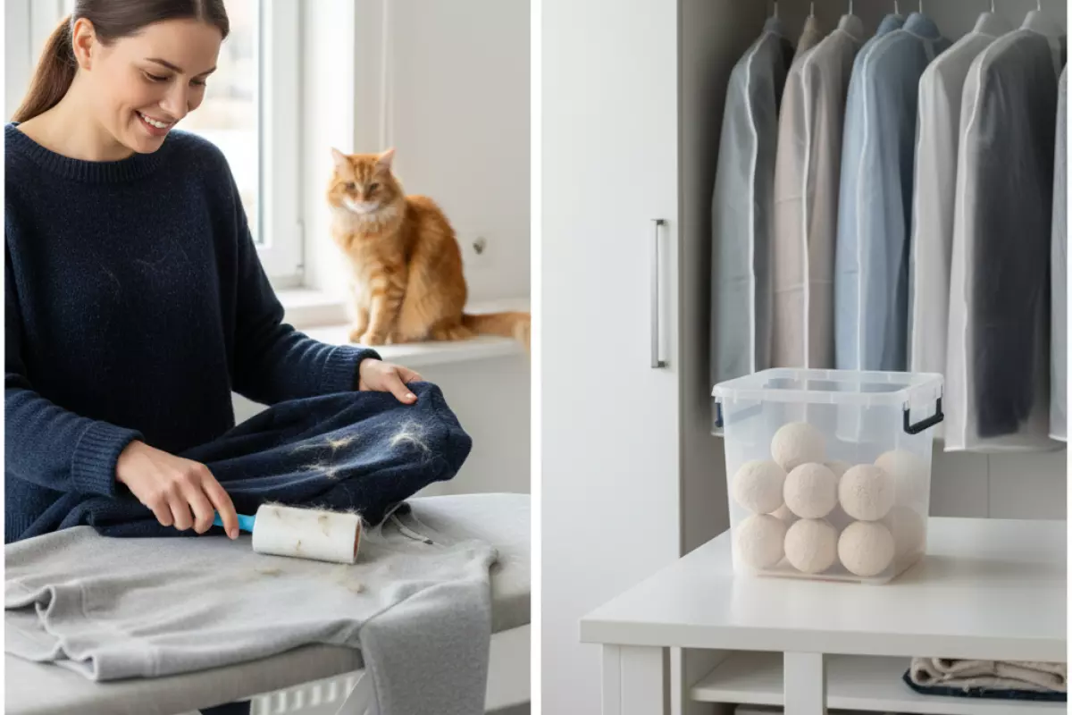Одежда собирает шерсть особенно быстро, потому что ткани электризуются, а ворсинки цепляются за петли материала. На тёмных вещах это заметно сильнее, но проблема касается и светлых тканей, особенно трикотажа, флиса и шерстяных изделий. Самый удобный подход — разделить уход на два этапа: быстрое снятие шерсти перед выходом и профилактику во время стирки и хранения.