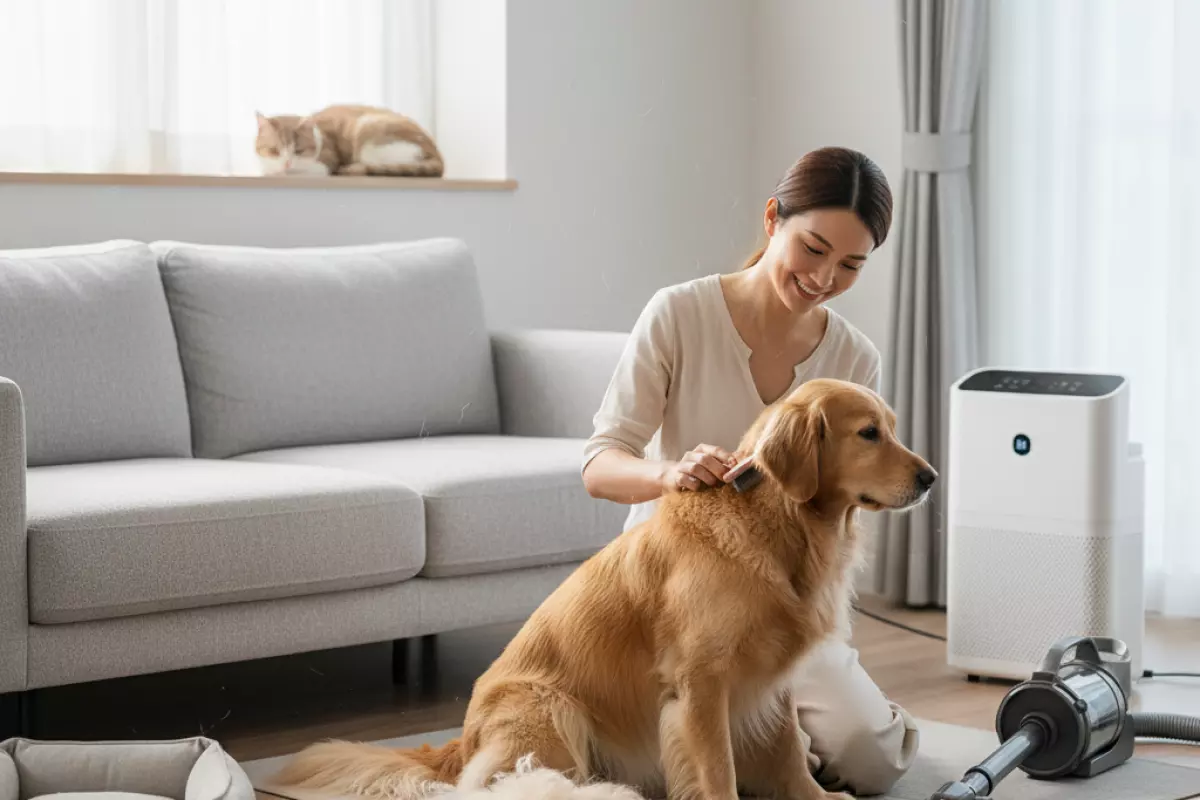 Проще не бесконечно собирать шерсть, а сократить её количество в помещении. Основной источник — естественная линька, но на её заметность влияет не только порода питомца. Имеют значение регулярность вычёсывания, состояние воздуха, текстиль в доме и привычки самого животного.