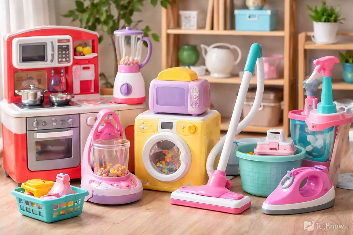 Детская бытовая техника — это игрушки, выполненные в виде упрощенных копий реальных домашних приборов. Они созданы специально для ролевых игр, в которых ребенок повторяет действия взрослых.