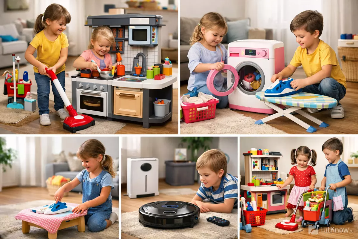 | 2–3 года | Пылесосы, чайники, простые кухни | Понятный сценарий, минимум звуков, простое управление | Слишком громкие и перегруженные эффектами модели | Повторение действий взрослых без сложных правил |