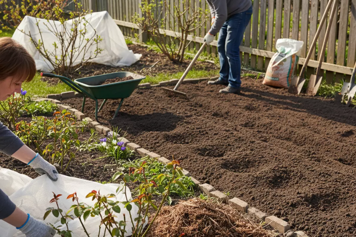 Проверьте, как перезимовали посадки: уберите подопревшую мульчу, разокучьте розы и ягодные кусты, снимайте укрытия постепенно, чтобы не «сжечь» побеги солнцем и ветром. Если ночами ещё подмораживает, держите под рукой нетканку для быстрого укрытия.