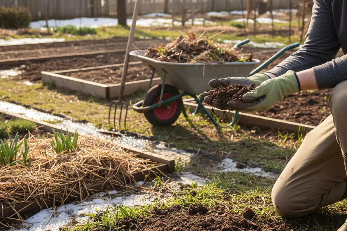 Сейчас важно использовать время до активного сезона: проверить запасы, подготовить инвентарь и наметить посевы. На участке основная задача — удержать снег там, где он нужен, и не допустить поломок от наледи и ветра.