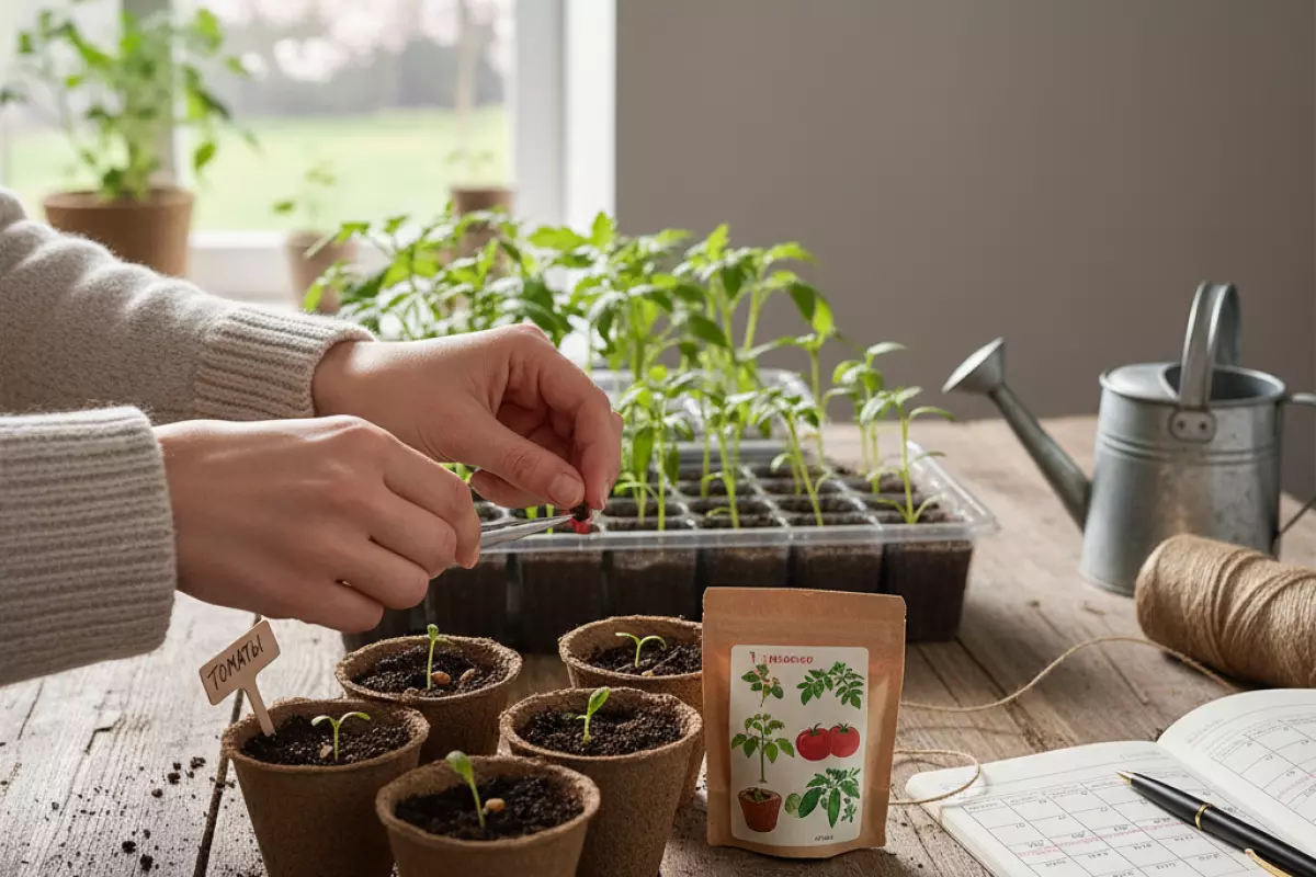 В конце зимы уже можно начинать посевы культур с длинным периодом развития. Удобно заранее разложить семена по пакетикам, подписать даты и подготовить грунт, чтобы не делать всё в спешке.