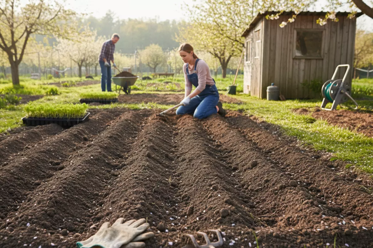 Начни с быстрого осмотра участка и уборки: что осталось с осени, где стоит вода, какие грядки просели, а где почва уже подсохла. Это экономит время: сначала приводишь в порядок «скелет» огорода, и только потом берёшься за землю и посевы.