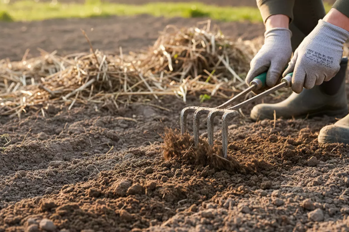 Переворачивание пласта весной часто приносит больше вреда: нарушается структура, пересушивается верхний слой, а полезная микрофлора уходит в стресс. На многих участках достаточно рыхления на штык без переворота или работы плоскорезом.
