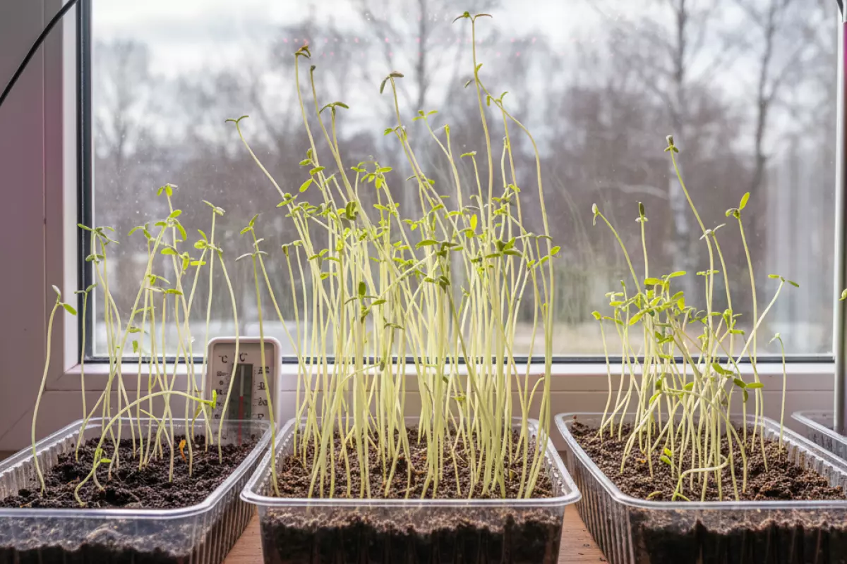 - Сеянцы вытягиваются — мало света и слишком тепло. Добавьте досветку, переставьте в более прохладное место, не перекармливайте азотом.