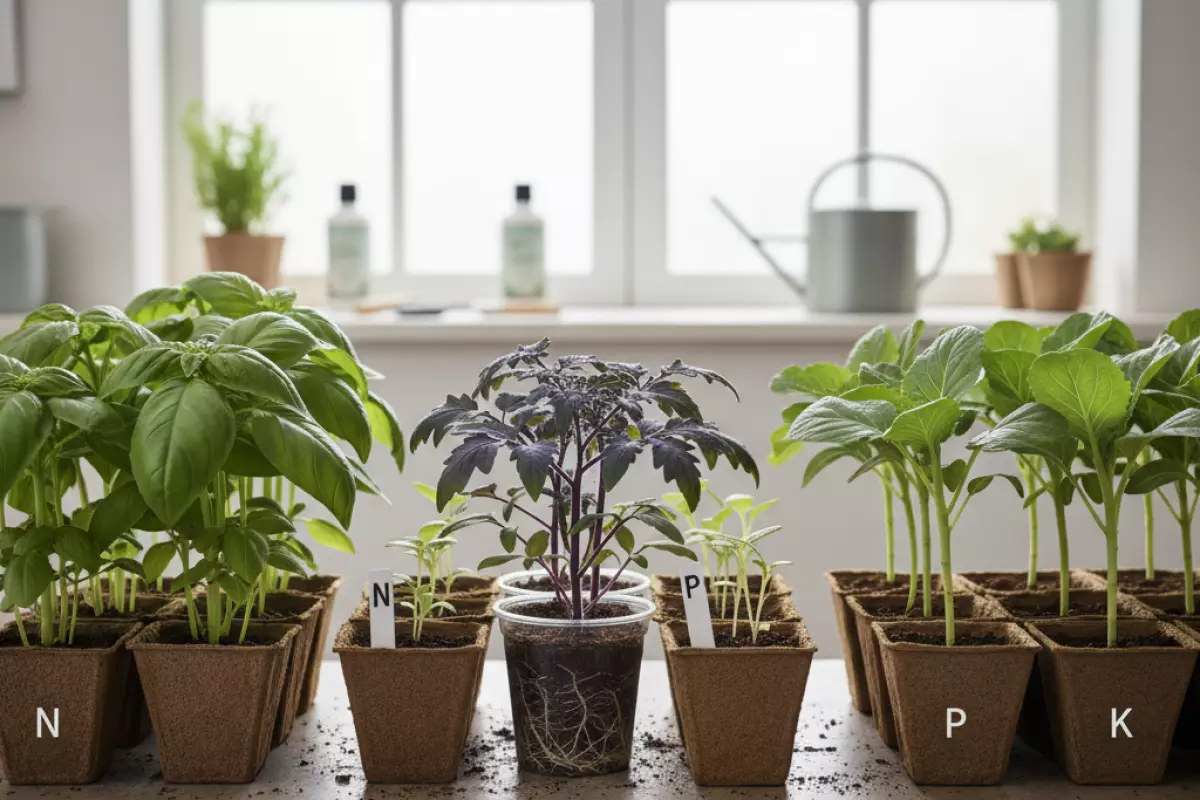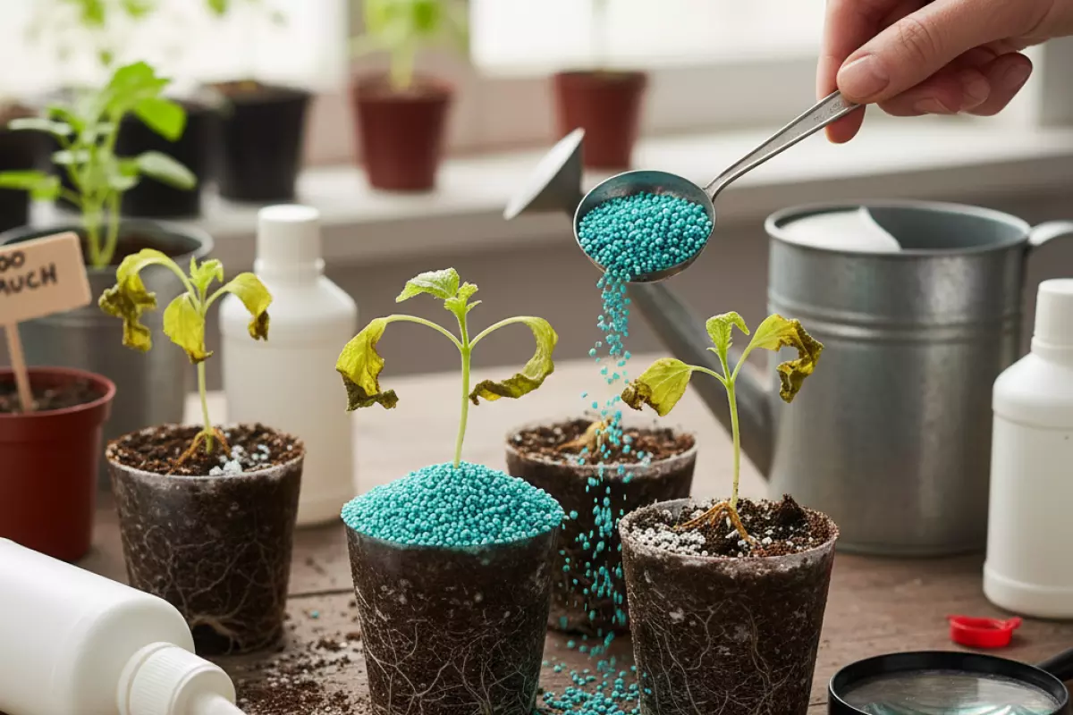 Избыток азота дает сочную зелень, но рассада вытягивается и хуже переносит пересадку. При этом нехватка калия и фосфора проявляется медленным ростом и слабой корневой системой. Важно выбирать состав под стадию: на старте умеренно, ближе к высадке — меньше азота и больше «на корни и устойчивость».