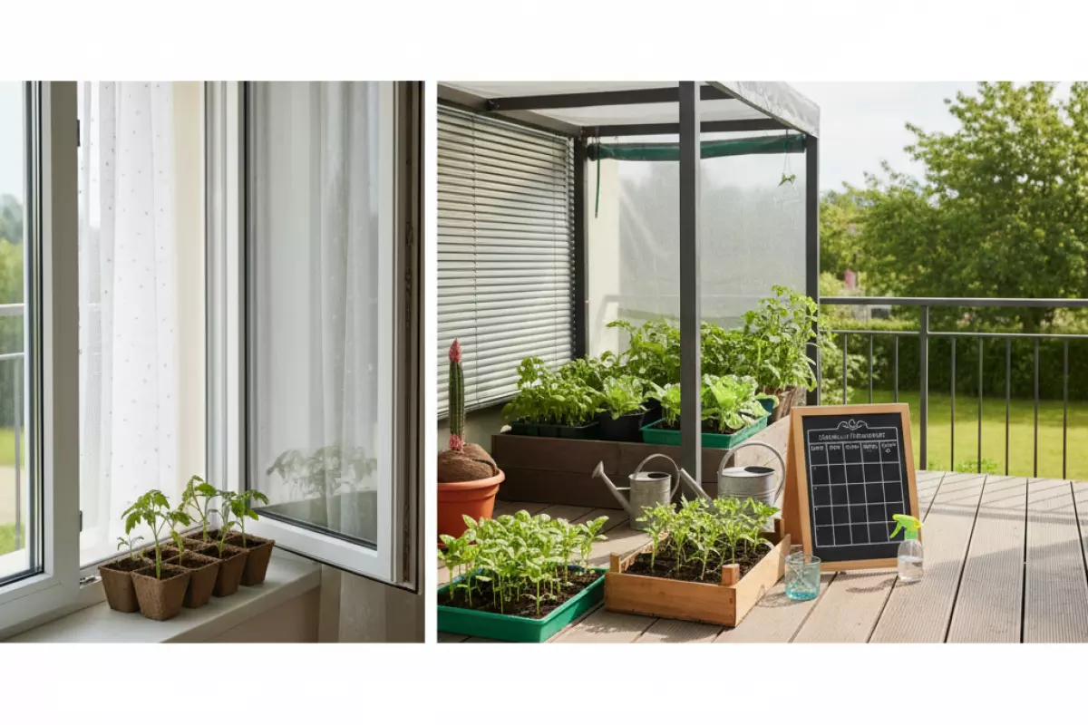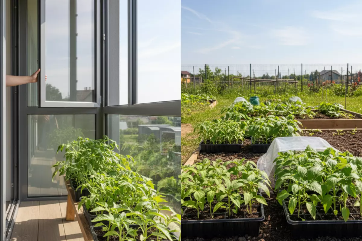 Переносить сеянцы из комнаты к открытому воздуху лучше постепенно: меняются температура, ветер, влажность и яркость света. Самый удобный вариант для старта — лоджия или балкон: там проще контролировать условия и быстро занести ящики обратно, если погода «передумала».