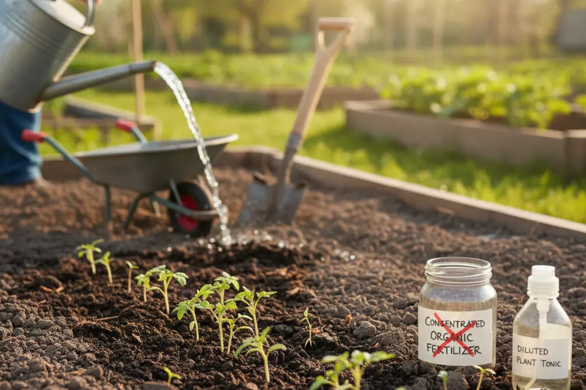 | Посевы только взошли, рассада приживается | Высокий шанс ожога корней, задержка укоренения | Тонкий слой зрелого компоста как мульча; полив тёплой водой без подкормок 7–10 дней |