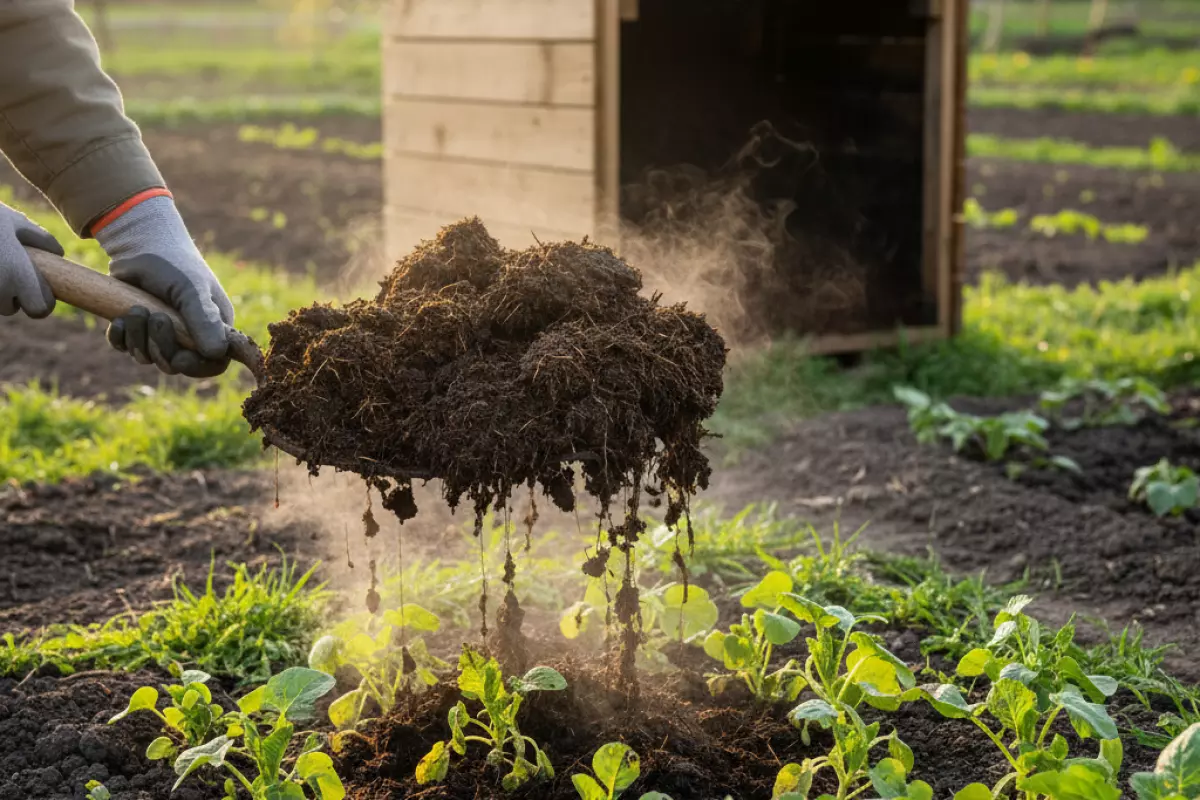 Созревший компост — универсальная штука: подходит и для огорода, и для теплицы, и для мульчирования. Он не такой «горячий», как свежая органика, и обычно безопаснее в работе. Если компост ещё сыроват и с узнаваемыми остатками, лучше оставить его на дозревание или использовать как мульчу в междурядьях, не заделывая глубоко.