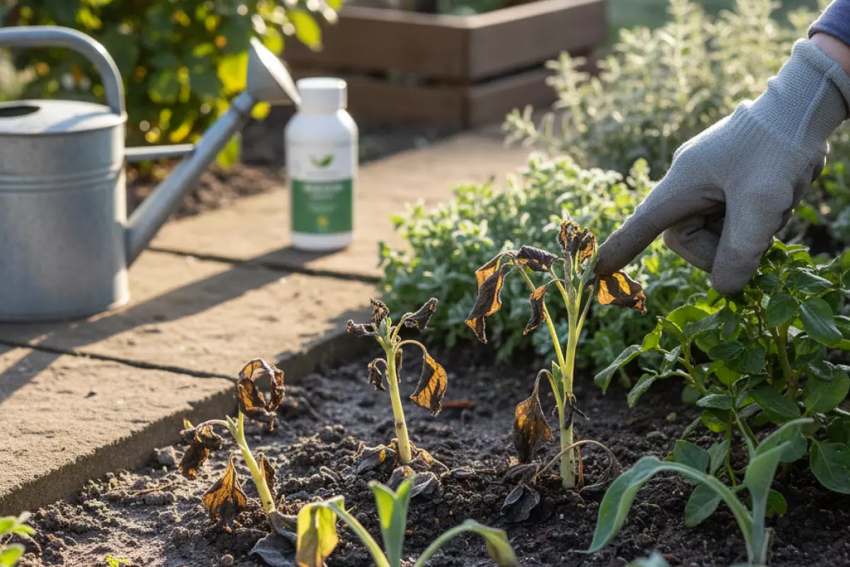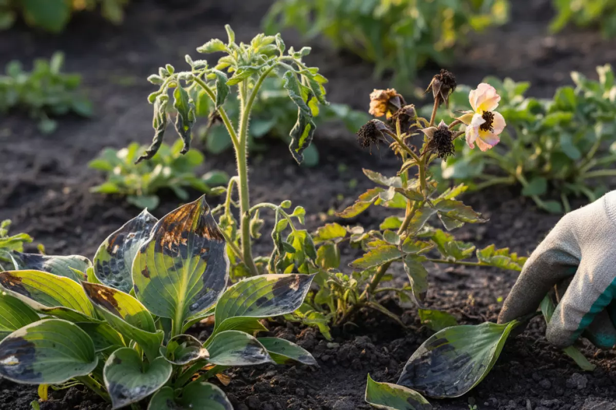 После подмерзания ткани становятся уязвимыми для инфекций. На плодовых и декоративных кустарниках стоит осмотреть кору: трещины, потемнения, мокнущие участки — сигнал, что нужен аккуратный санитарный уход. У рассады и цветов следите за прикорневой зоной: «чёрная ножка» и гнили развиваются быстро при сырости.