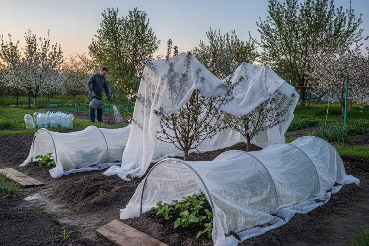 Действовать лучше по прогнозу: если ночью обещают «минус», подготовьте укрытия и влагозарядный полив заранее, а не в темноте по факту. Самое уязвимое — молодые посадки, рассада в грунте, цветущие косточковые и все, что уже тронулось в рост.