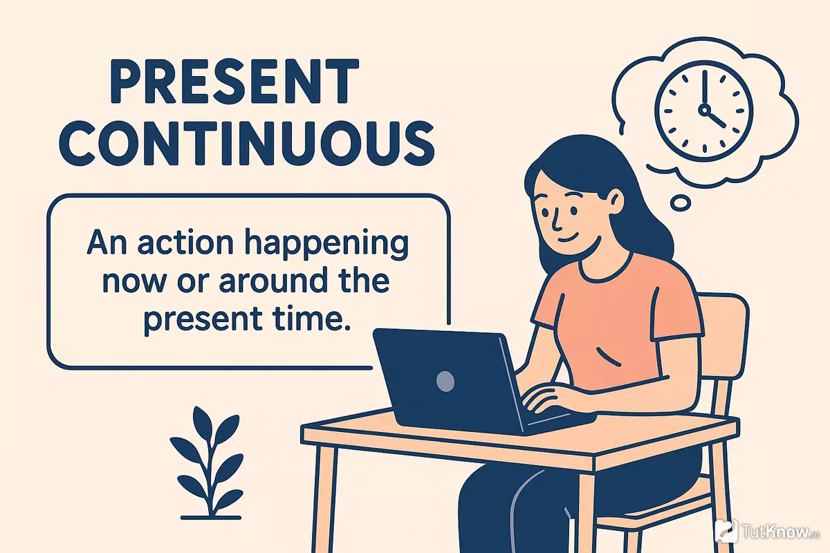 Present Continuous — это грамматическая конструкция, используемая для описания действий, происходящих в данный момент времени. Она также может обозначать запланированные события в ближайшем будущем. В отличие от Present Simple, который описывает регулярные действия или факты, настоящее длительное время акцентирует внимание на текущих процессах.