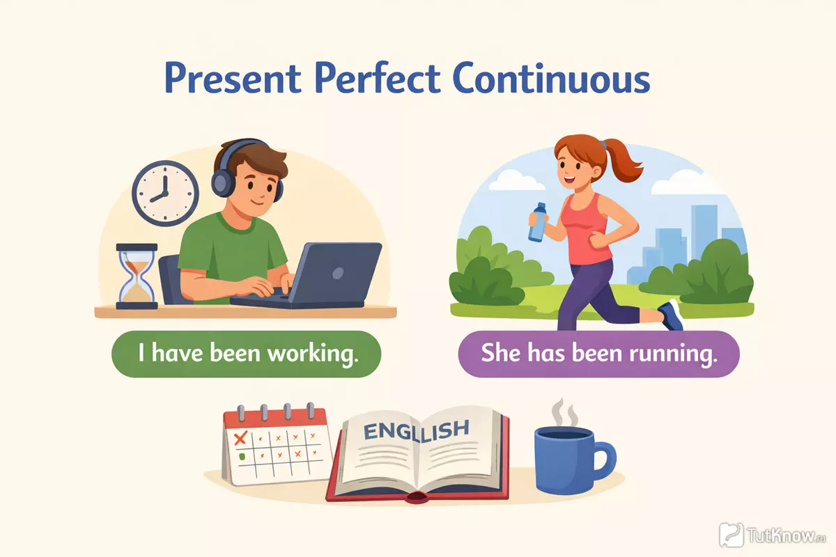 Present Perfect Continuous помогает показать, что действие началось в прошлом и продолжается до настоящего момента или только что завершилось, при этом важен сам процесс. Обычно такую конструкцию используют, когда нужно подчеркнуть длительность, повторяемость или незавершённость действия.