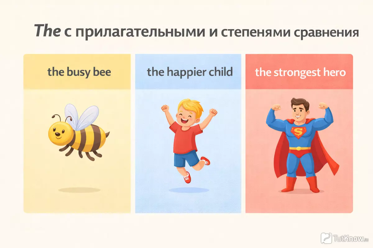 - Сравнительные и превосходные степени: «the older students», «the most beautiful painting».