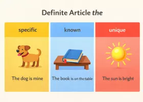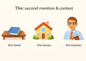 - Уточнение конкретного объекта: «the blue car» — тот самый синий автомобиль, а не любой.