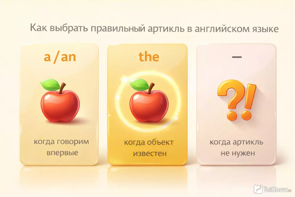 | Объект упоминается впервые? | a/an (если исчисляемое, единственное число) | a cat (какая-то кошка), an apple (какое-то яблоко) |