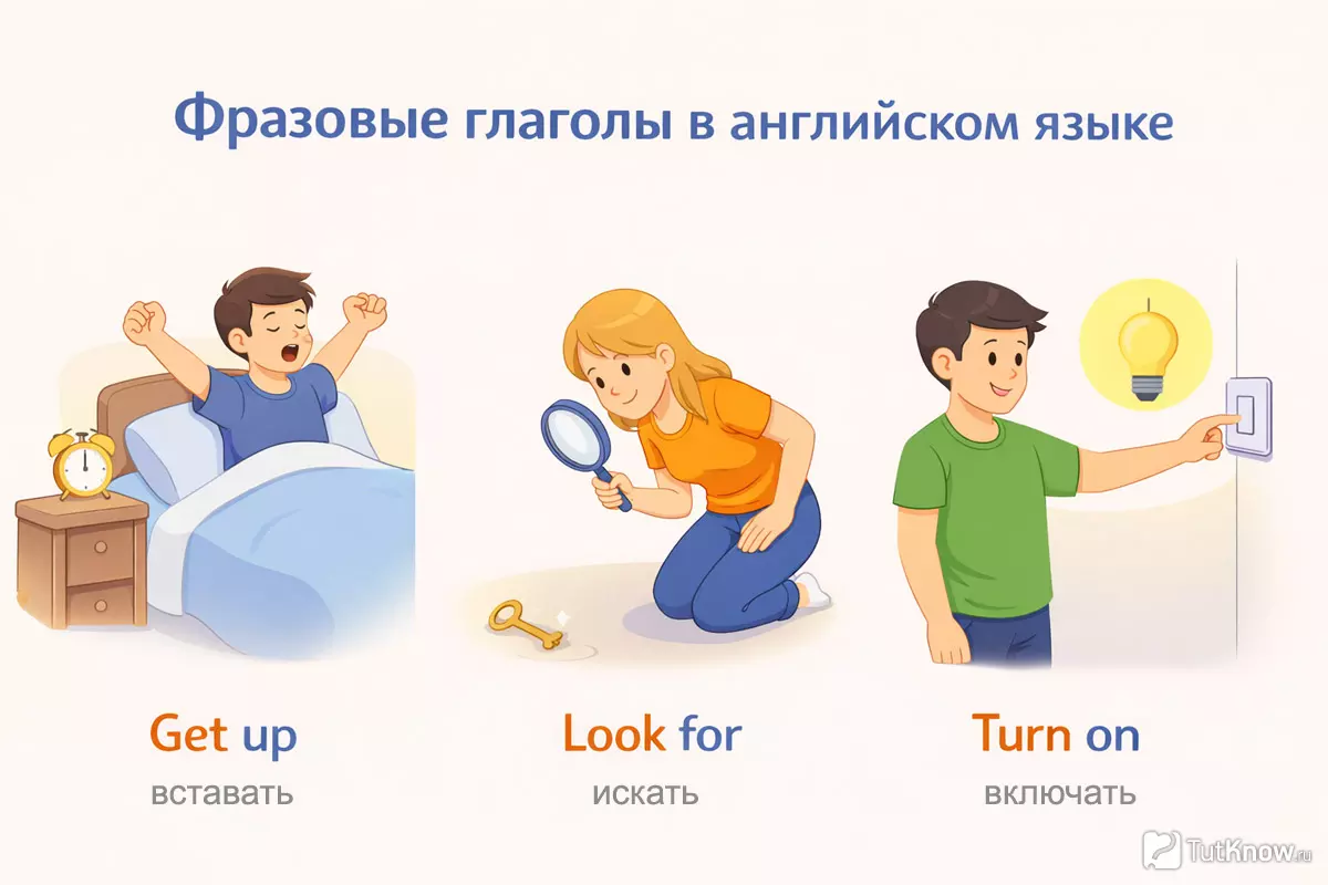 Похожее на конструктор, это сочетание обычного глагола с одной или двумя короткими частицами — предлогами или наречиями. Часто такие комбинации дают новый смысл, который не всегда можно понять по отдельным словам. Например, «look» — просто «смотреть», а «look after» — уже «заботиться».