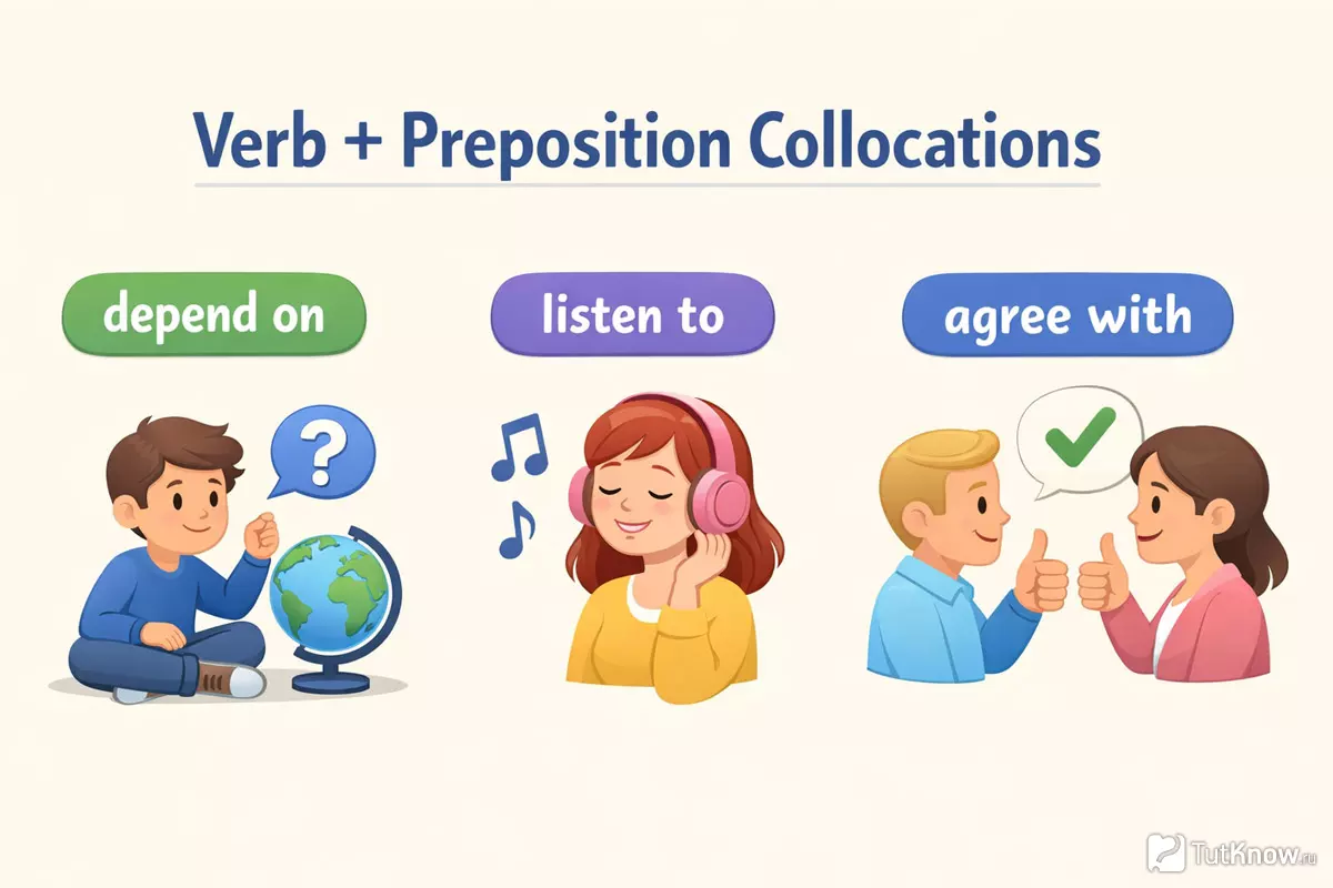 В английском языке есть такие комбинации слов, где глагол всегда используется с определённым предлогом. Эти связки нельзя переводить дословно или «угадывать» по логике — они закрепились в языке как единое выражение. Например, мы говорим «зависеть от» или «верить в», и в английском тоже есть свои привычные пары.