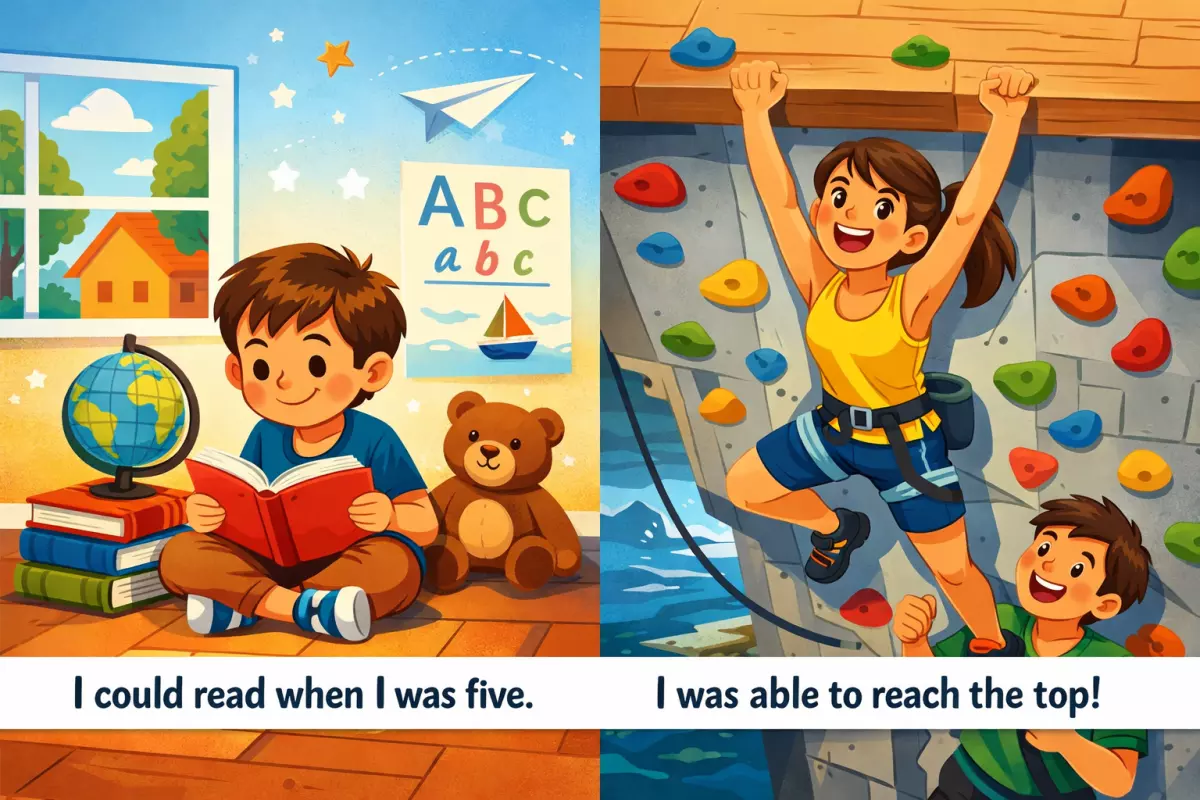| could + V | Реальная способность в прошлом | Ясное «тогда», «в детстве», «раньше», описание умения | «When I was five, I could read.» | «В пять лет я уже умел читать» |