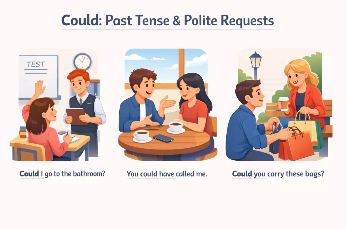 Модальный глагол could в английском часто вызывает путаницу: он может указывать на прошедшее, но нередко звучит как вежливая, мягкая просьба. Разберёмся, когда could действительно относится к прошлому и описывает возможность или способность, а когда помогает говорить деликатно и уверенно, смягчая формулировку и не превращая её в приказ.
