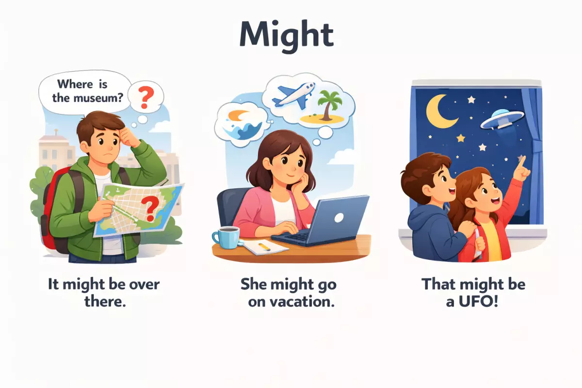 В английском слово might помогает говорить о предположениях и неуверенной вероятности, когда уверенности не хватает, но мысль уже просится наружу. Оно звучит мягче, чем will, и выручает в переписке, догадках и вежливых советах, когда важно не давить на собеседника. Разберёмся, где оно уместно, как правильно строить с ним фразы и чем оно отличается от may и could, чтобы не путаться в оттенках смысла.