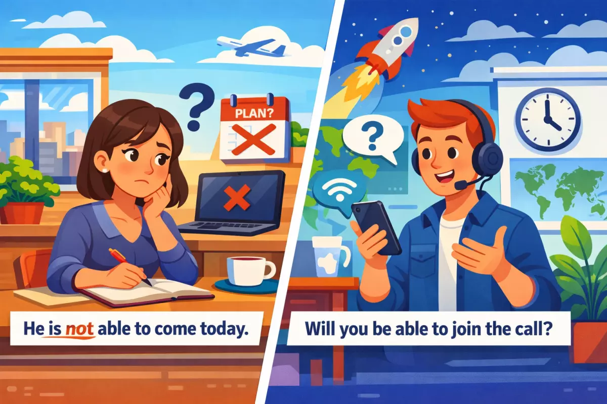 | Просьба/вежливый вопрос | «Are you able to…?» вместо просьбы | «Can/Could you…?» | Be able to чаще про способность, а не про вежливость |
