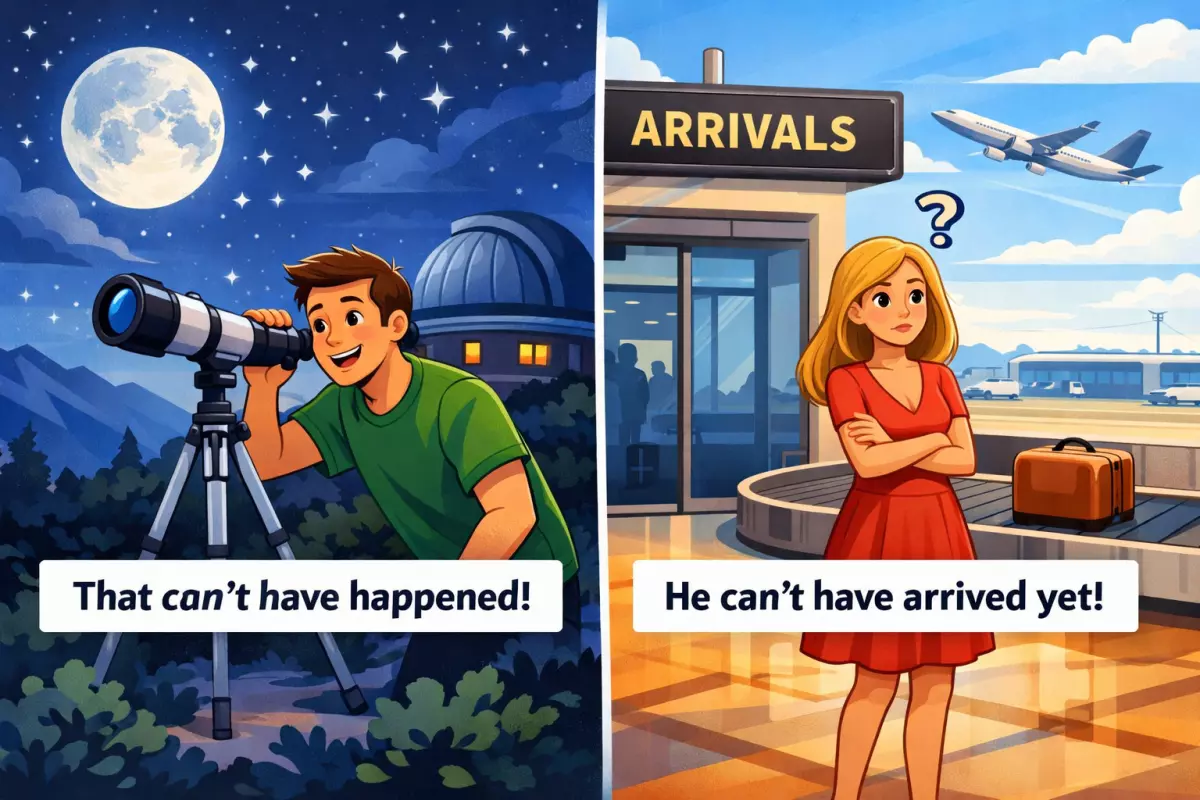 | Сильное противоречие фактам (алиби, время, расстояние) | Появляется уверенное отрицание | can’t have + V3 | «He can’t have been at home — he was with us all evening.» |