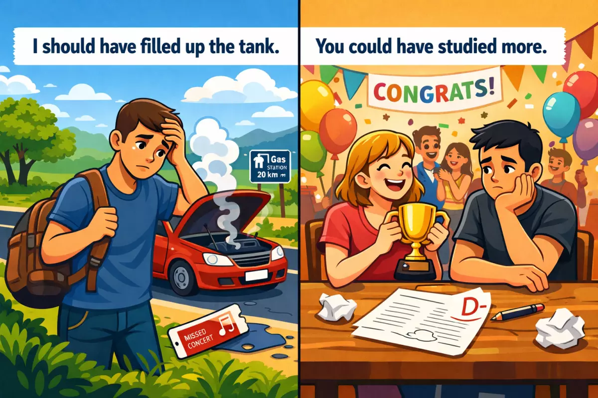 - Сожаление и «разбор полётов»: should have + V3 и shouldn’t have + V3 часто звучат как оценка уже случившегося.