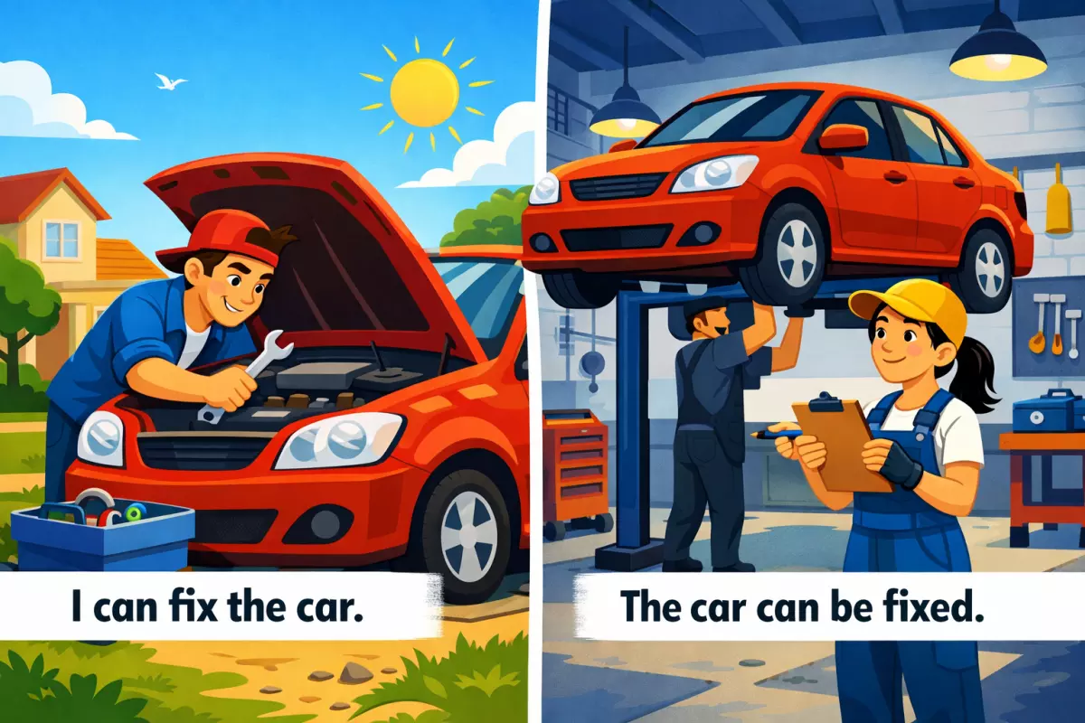 | Возможность (can/could) | They can fix the device. | The device can be fixed. | В активе важен исполнитель; в пассиве — факт ремонтопригодности. |