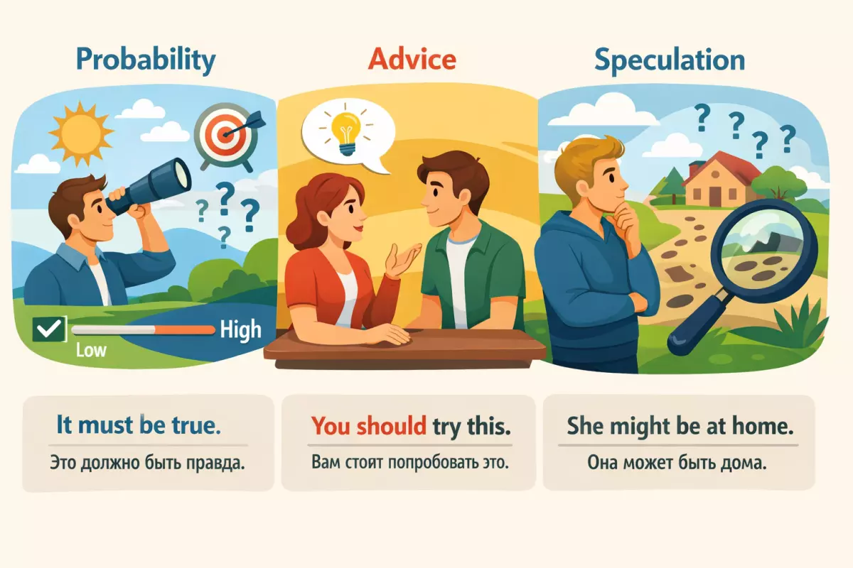 Часто полезно проверять себя вопросом: я говорю о правиле, совете, догадке или возможности? Ответ обычно сразу подсказывает нужную форму.