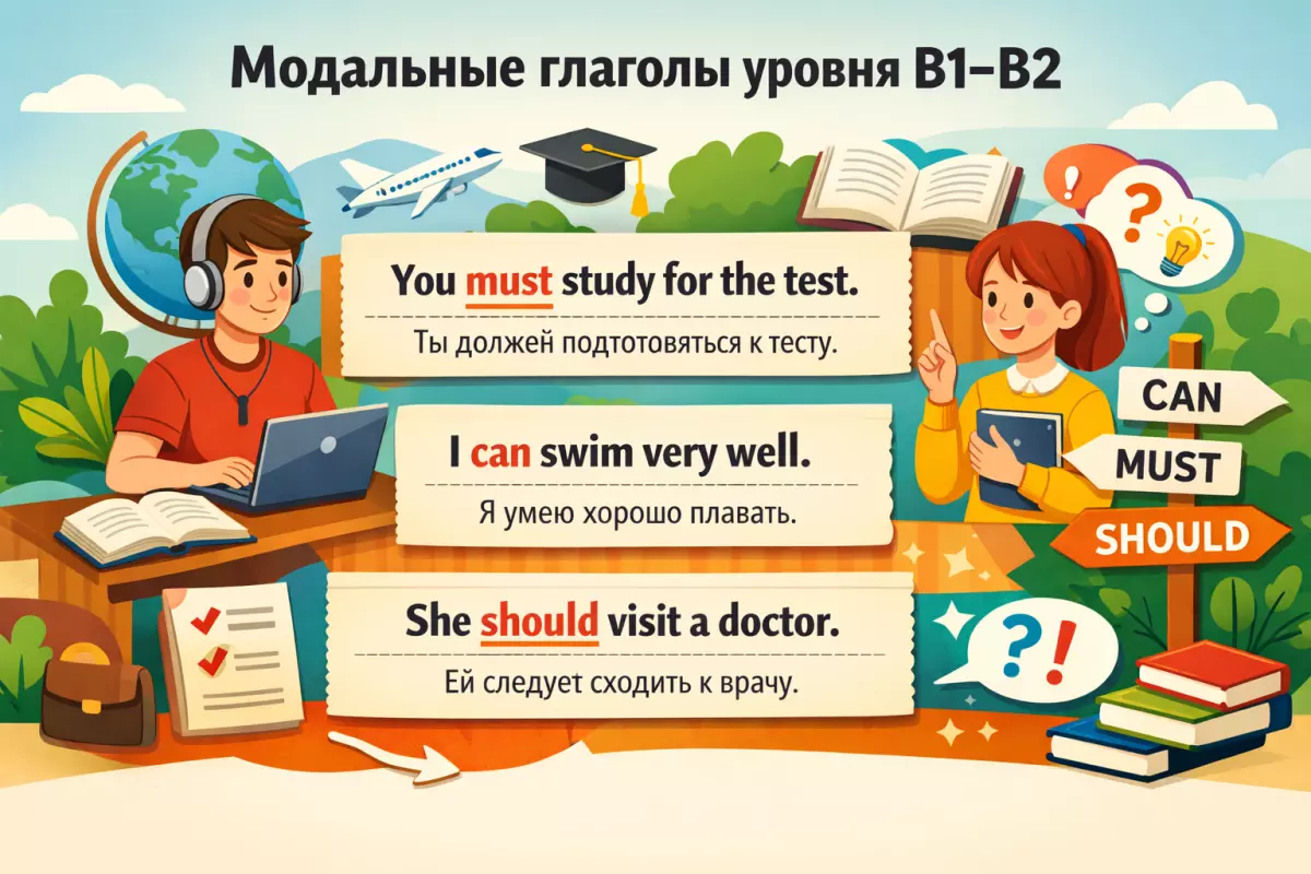 На среднем уровне уже недостаточно знать только базовые значения вроде обязанности или разрешения. Важно понимать, как модальные глаголы меняют оттенок смысла: делают фразу мягче, осторожнее, увереннее или, наоборот, менее категоричной. Именно на уровнях B1–B2 обычно переходят от простого правила к реальному использованию в речи.