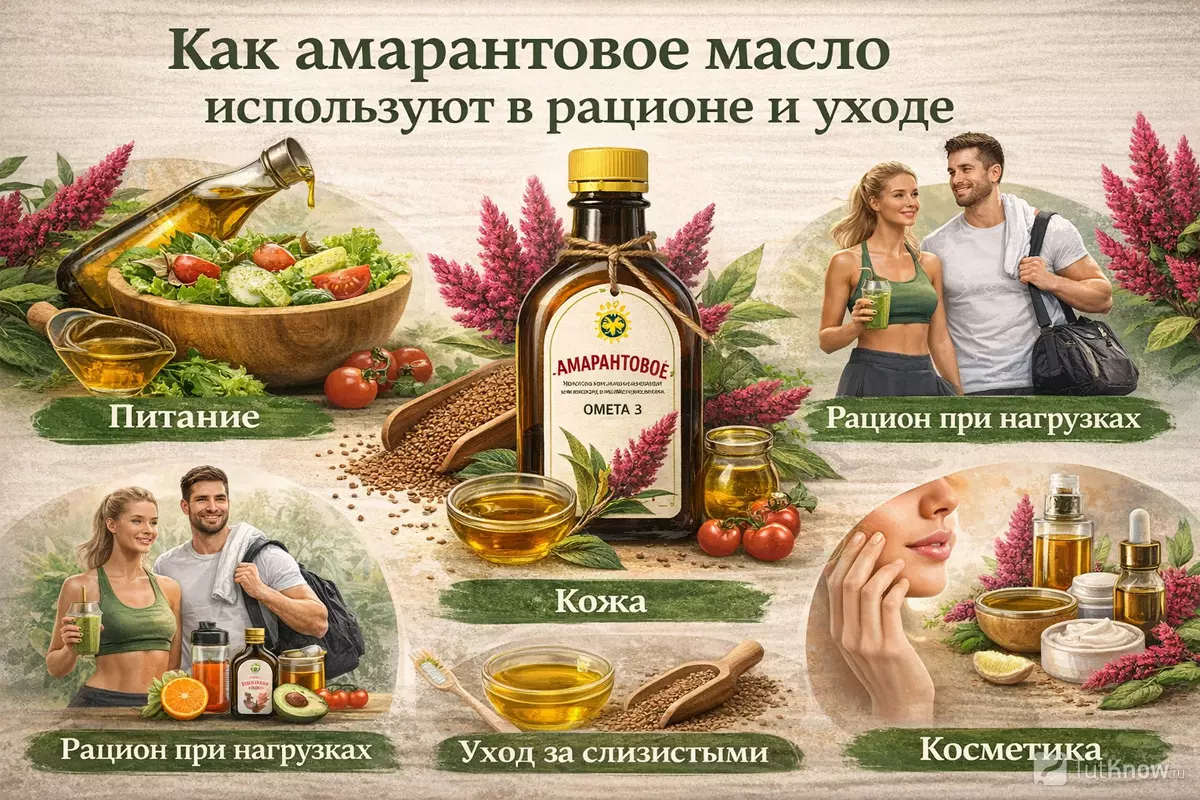 Амарантовое масло чаще всего рассматривают как функциональный продукт питания и универсальное растительное масло с широким спектром применения. Его ценят не за «лечебный эффект», а за состав — сочетание жирных кислот, сквалена, витаминов и минералов, которые логично вписываются в повседневный рацион и уход за телом.