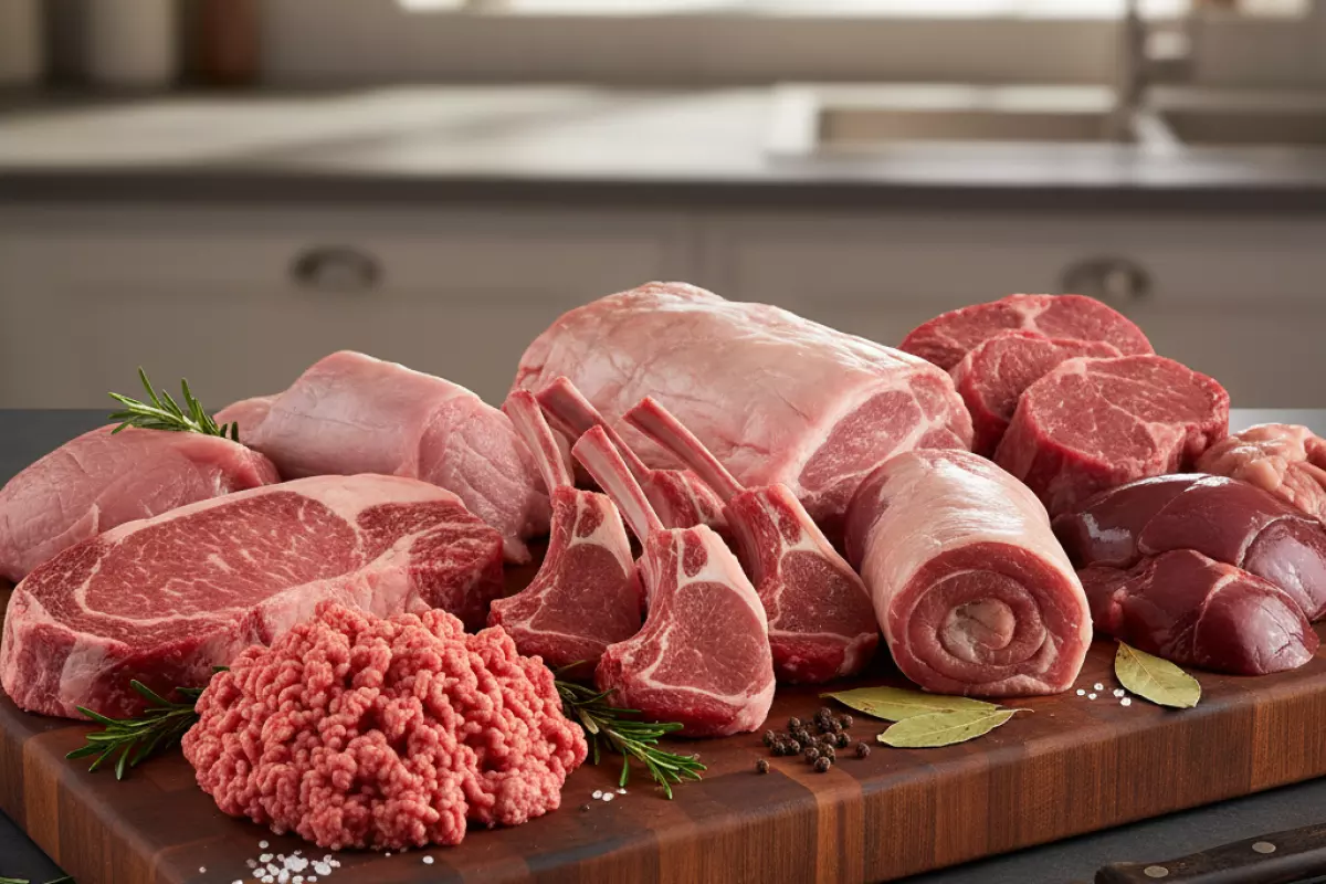 | Красное (непереработанное) | Говядина, свинина, баранина, козлятина, оленина | Больше миоглобина; выраженный вкус; часто выше доля гемового железа | Выбирать более постные части, контролировать порцию, не пережаривать |