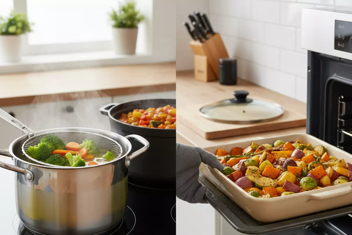 Если цель — сохранить максимум полезного без усложнения, обычно выигрывают короткая варка до готовности, тушение с небольшим количеством жидкости и запекание без пересушивания. В любом варианте решают детали: размер нарезки, время и то, используете ли вы жидкость, в которую перешли вещества.