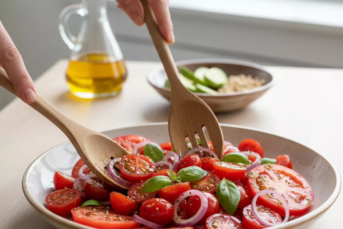| Слишком много масла в салате | Усвоение не растёт пропорционально, а калорийность — да | Сократить до 1–2 ч. л., добавить специи/кислоту для вкуса | Помидоры + масло + лимонный сок + перец |