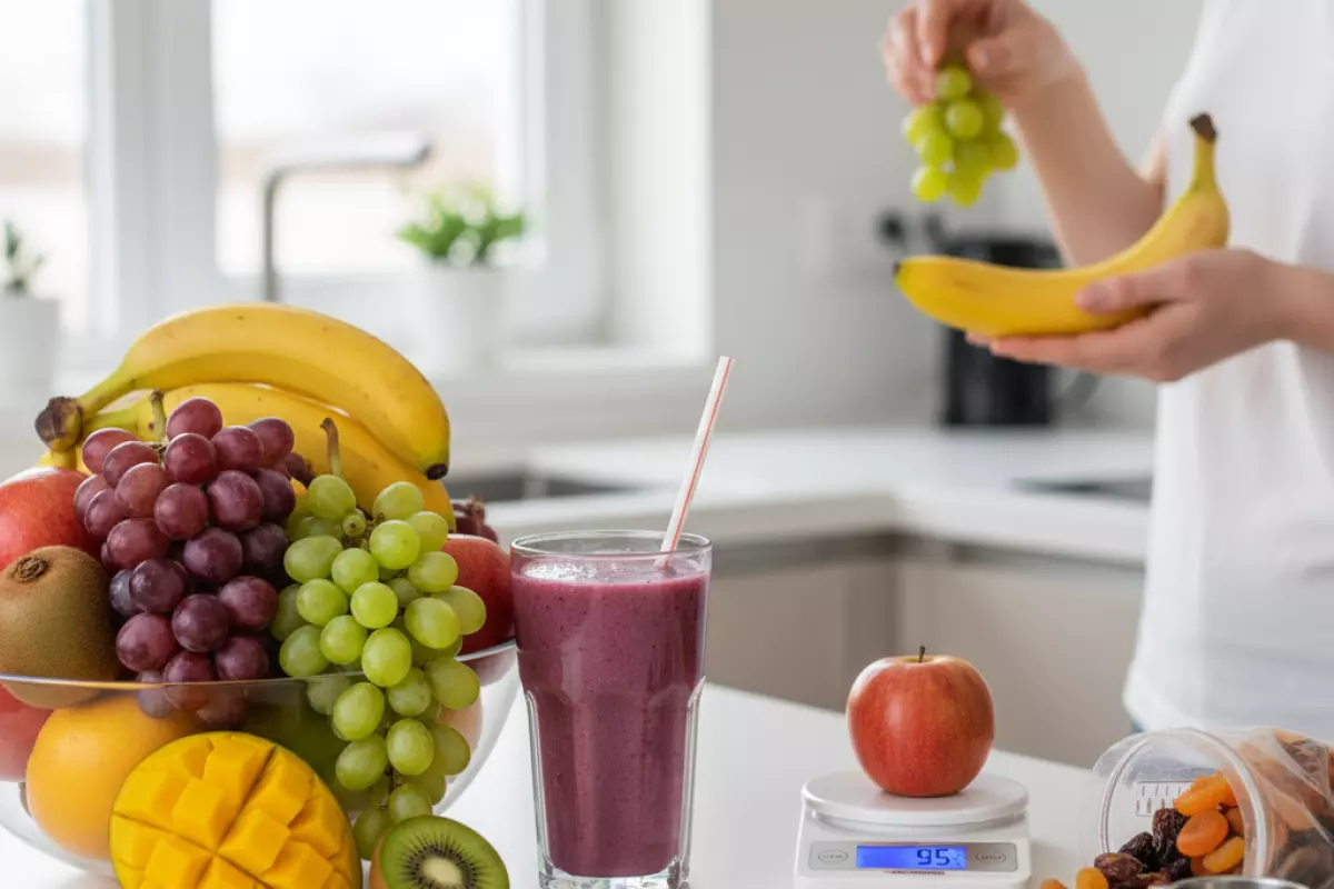 Типичный сценарий: человек урезает печенье и хлеб, но добавляет больше винограда, бананов, сухофруктов и смузи. По ощущениям это «легко», а по цифрам выходит почти как десерт. У цельных плодов есть клетчатка и объём, но в соках, смузи и пюре насыщение слабее — выпить калории проще, чем съесть.