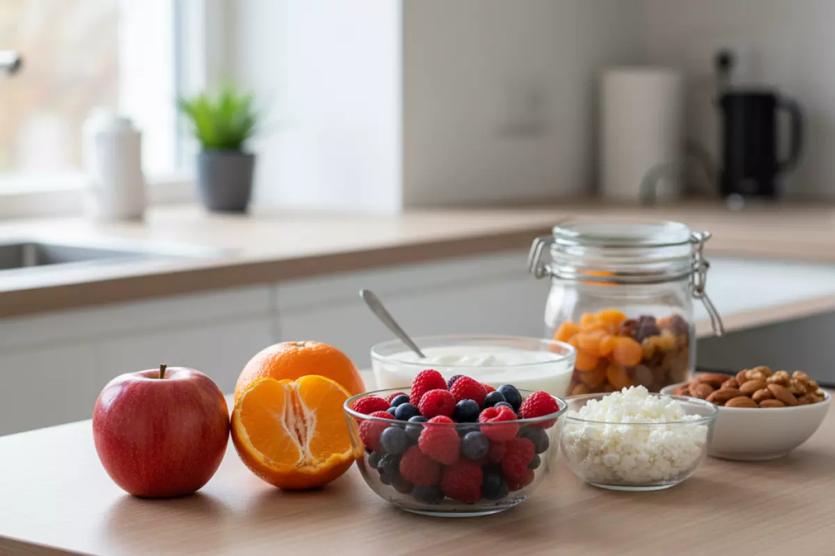 - Как лучше: если нужен перекус, добавлять белок (йогурт без сахара, творог, яйца, сыр) или клетчатку (овощи, цельные крупы), а фрукт оставить как дополнение.
