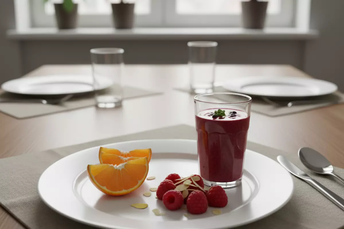 | Фруктовый сок или смузи без добавок | Сытость короткая, через 30–90 минут тянет перекусить | Мало «жевательной» нагрузки, клетчатка частично разрушена, сахара заходят быстро | Заменить на цельный фрукт или добавить источник белка (йогурт без сахара) и немного жира (орехи) |