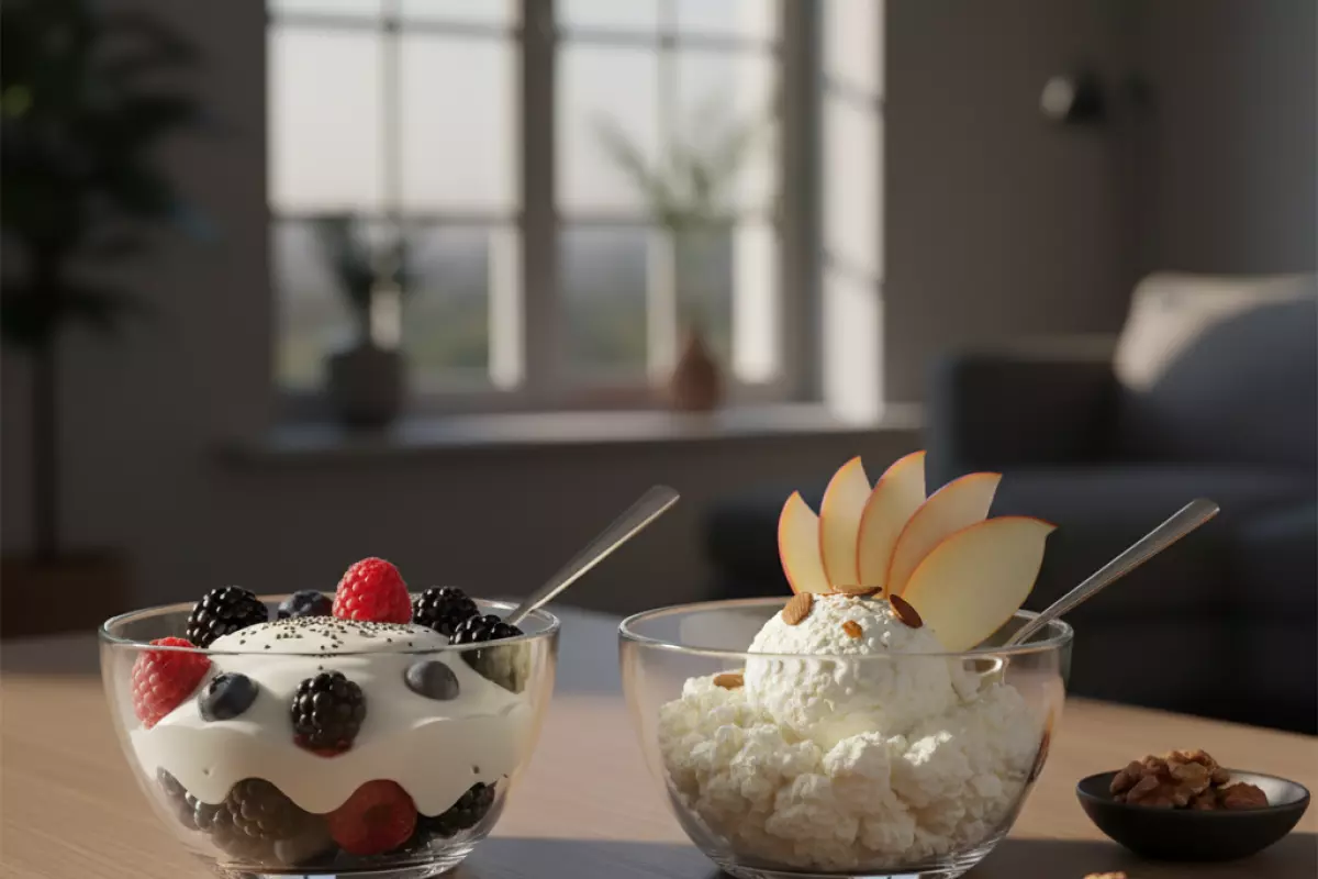 - Если хочется с чем-то: выбирайте несладкий йогурт/творог без сиропов.