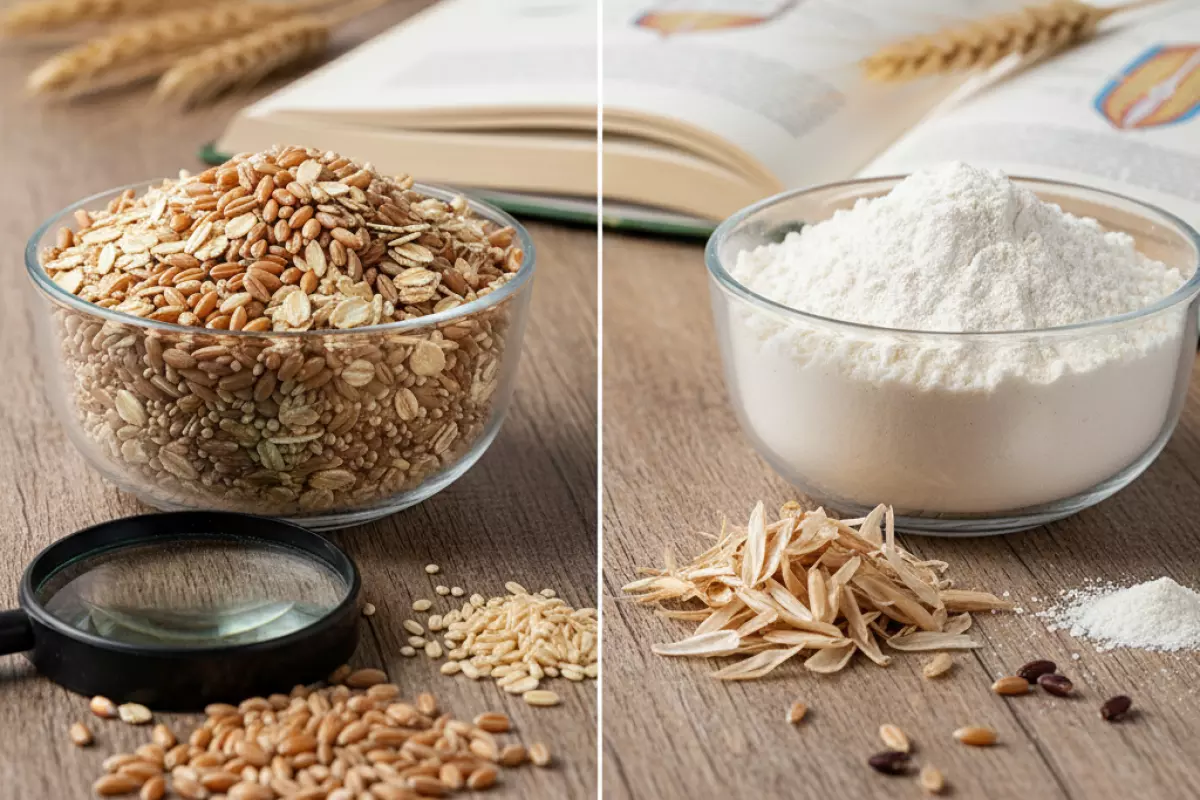 Разница начинается с того, что остаётся в зерне после обработки. В цельном варианте сохраняются оболочка и зародыш, а при рафинировании эти части обычно убирают, оставляя в основном крахмалистую сердцевину. Из-за этого меняются и вкус, и текстура, и то, как продукт «ведёт себя» в организме.