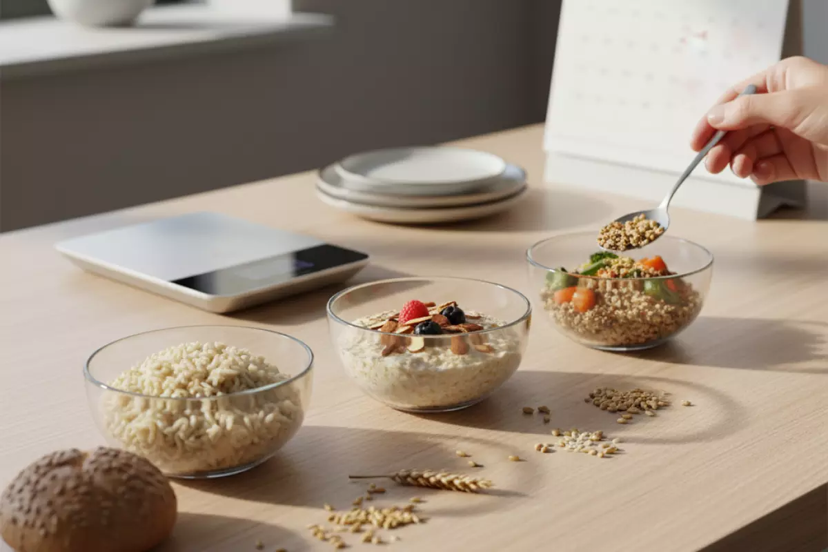 Практичный ориентир: начните с 1 порции цельного зерна в день и оцените самочувствие в течение 1–2 недель. Если всё комфортно, можно увеличивать частоту, оставляя место для овощей, белка и нормальных жиров.