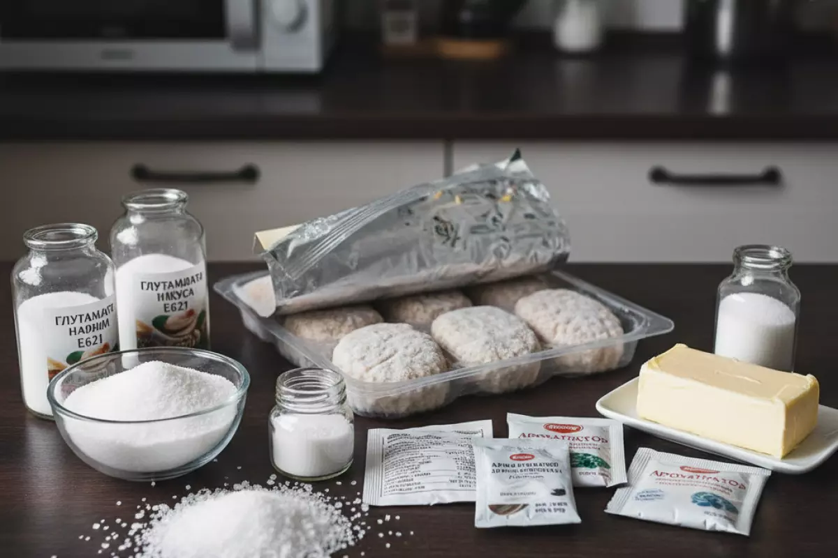- Глутамат натрия (E621), а также E627, E631 — делают вкус ярче, но часто идут в паре с повышенной солёностью и «пустым» составом.