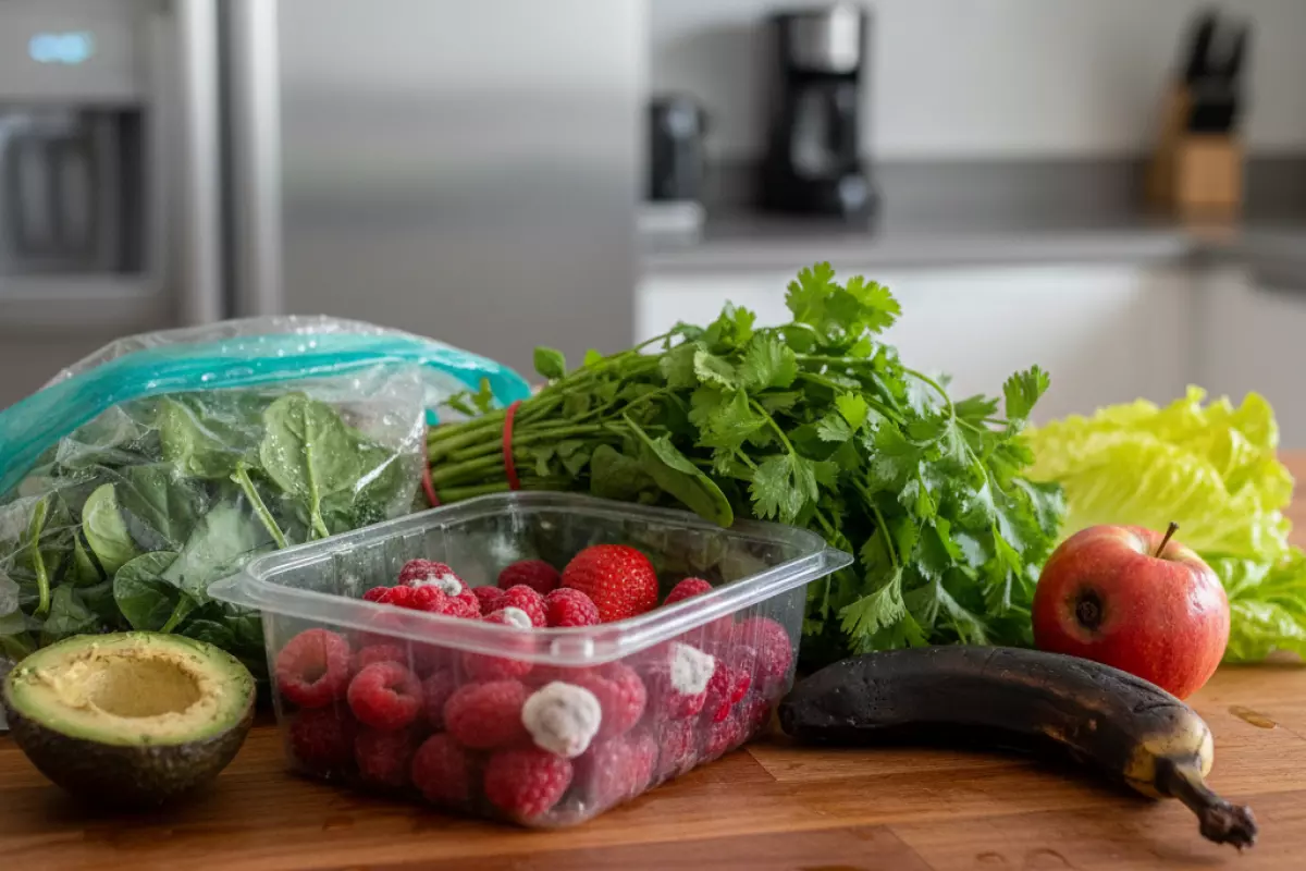 - Капли влаги в упаковке у ягод и зелени — частый предвестник плесени.