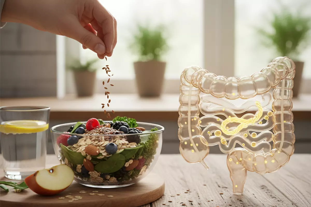 Пищевые волокна работают как «регулятор» для кишечника: они увеличивают объём содержимого, удерживают воду и помогают продвигать пищевой комок дальше без лишнего напряжения. Заодно это поддерживает более предсказуемый стул и снижает вероятность запоров.