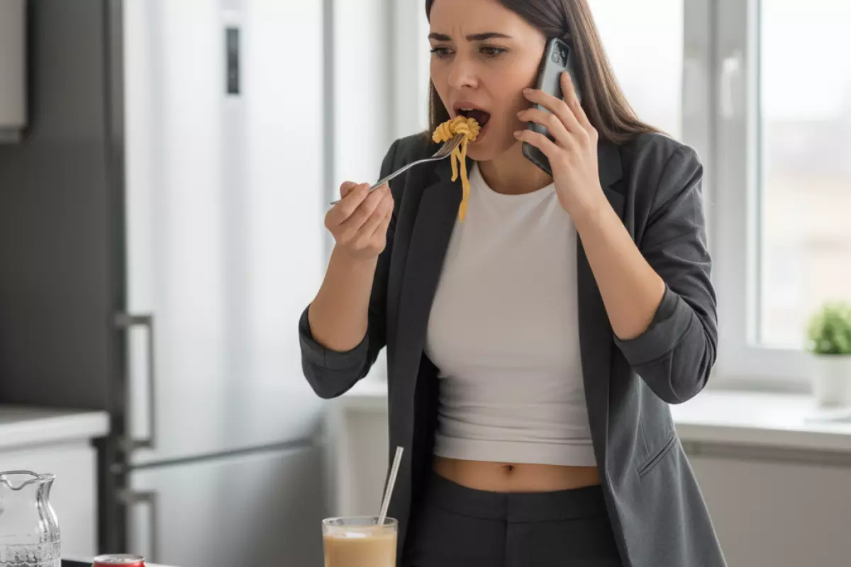 | Перекус «на бегу» | Быстрое жевание, разговоры, напиток через трубочку | Сесть на 10 минут и спокойно поесть | Скорость еды часто важнее состава |
