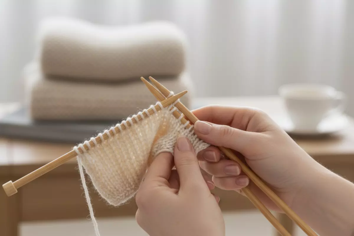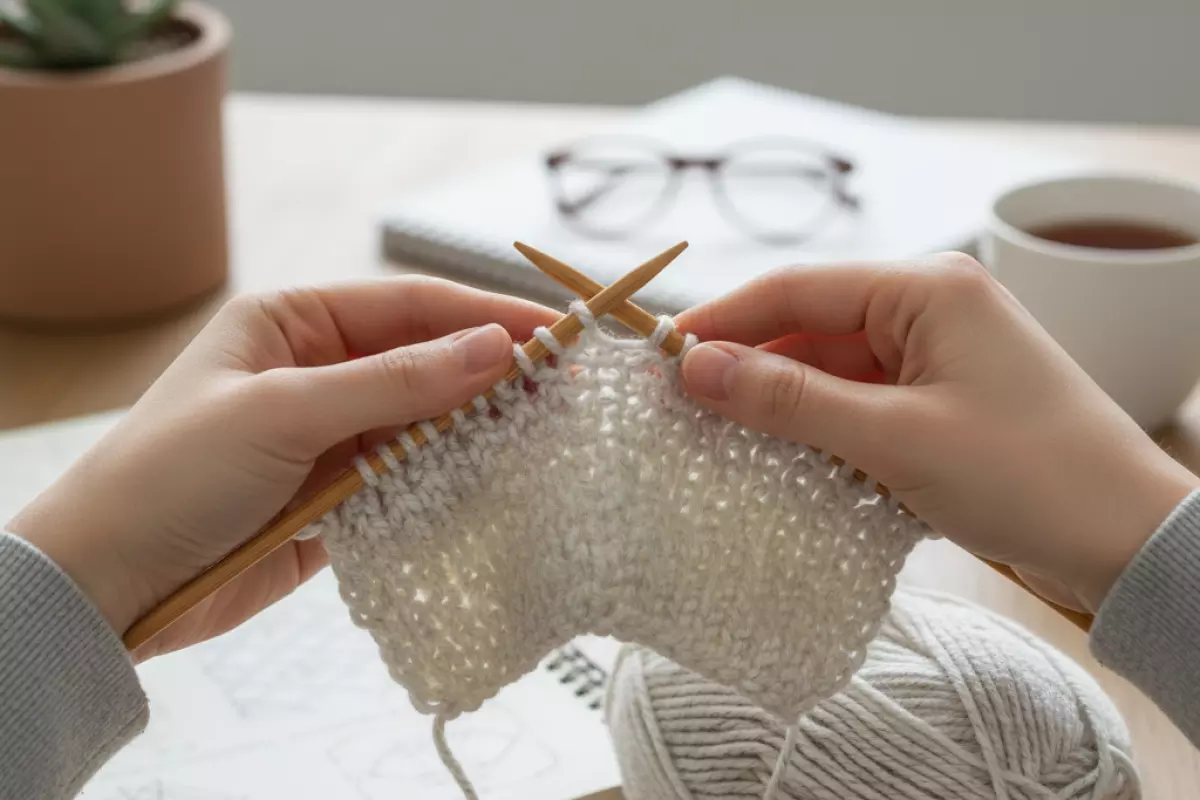 Нормально, если первые 20–30 минут уходят на «въезд» в движение, а потом становится легче. Хороший ориентир — ты можешь связать небольшой образец 10×10 см без постоянных остановок и понимаешь, где лицевая, а где изнаночная сторона. Если всё время хочется бросить из‑за путаницы, упрости задачу: один узор, одна толщина нити, короткие сессии по 15–20 минут.